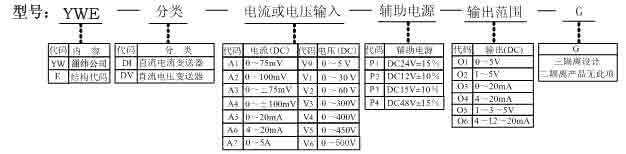YWE-DV型直流电压变送器,输入:0~60VDC, 输出:4~20mADC, 辅助电源:24VDC±15%