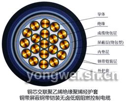 | WDZ-KYJY23 | 铜芯交联聚乙烯绝缘聚烯烃护套钢带铠装无卤低烟阻燃控制电缆 |