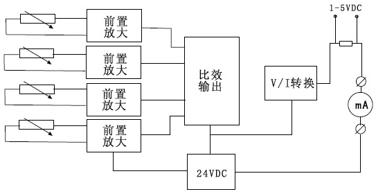 本产品可同时测量2至4个测量点,并将各个测温回路中的温度比较以后,把最高温度的一个点作为输出,在现场可通过按键逐个观看各个点的温度。